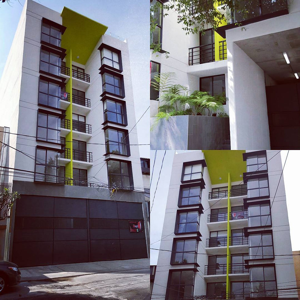 Edificio de 12 departamentos de interés medio residencial desde 85 m2 hasta 144 m2. Se construyó en un terreno de 600.24 m2 ubicado en la Col. Narvarte de la CDMX, una de las colonias con mayor plusvalía por estar rodeada de una amplia diversidad de servicios. Área total de construcción de 2,500.16 m2.